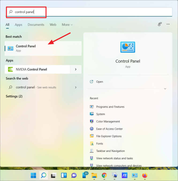 Step 1: Open the Control Panel by searching for Control Panel in the Windows search bar.