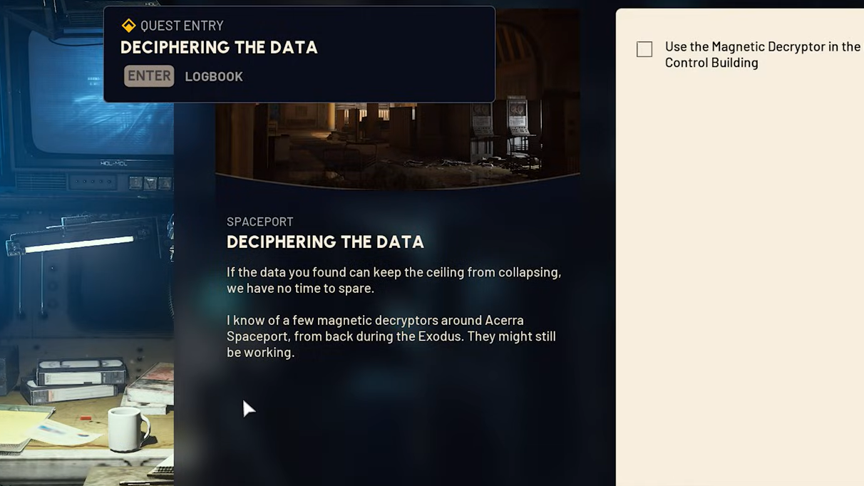- Use a Magnetic Decryptor inside the Fuel Control building in the northeast of Spaceport.