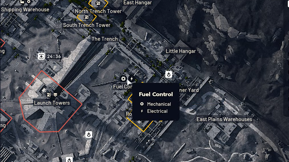 Fuel Control sits on the northeastern edge of Acerra Spaceport, beside the Rocket Assembly zone. It is the only major structure in that corner, so once you move into the northeast quadrant of the map, you are effectively looking for a single, standalone building.