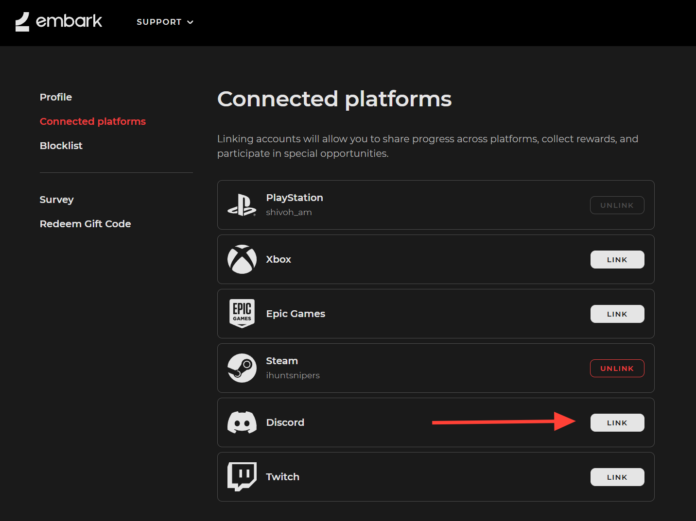Connecting your Embark ID to Discord and your game platform is done through Embark’s account site at id.embark.games/id/connected-platforms. That connection is what allows both in-game rewards (like the Hiker Backpack) and external rewards (like Orbs) to be granted correctly.
