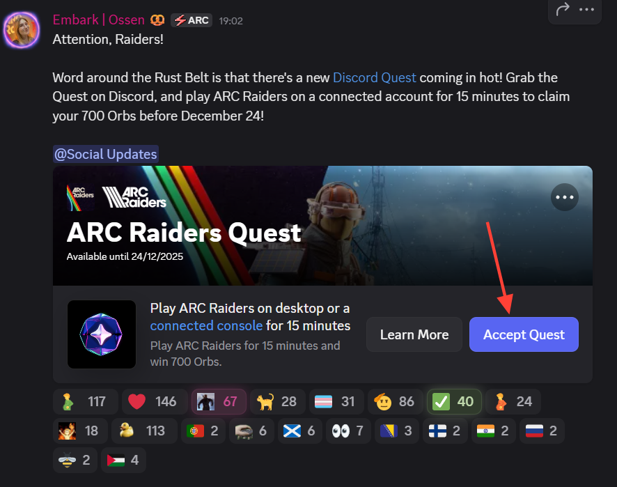 Step 1: Open the Discord desktop app and find the ARC Raiders quest (on this message link). Select it and use the Accept Quest button to opt in.