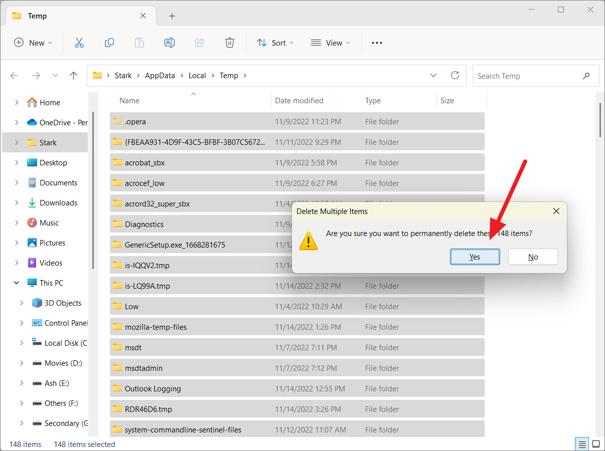 Corrupted temporary files can cause various errors, including 0x80004005. Deleting these files can resolve the problem.