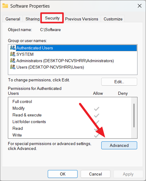 Step 6: Back in the Advanced Security Settings window, click Add to grant full control.