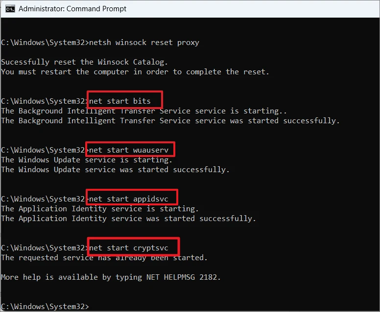 Ren %systemroot%\system32\catroot2 catroot2.bak