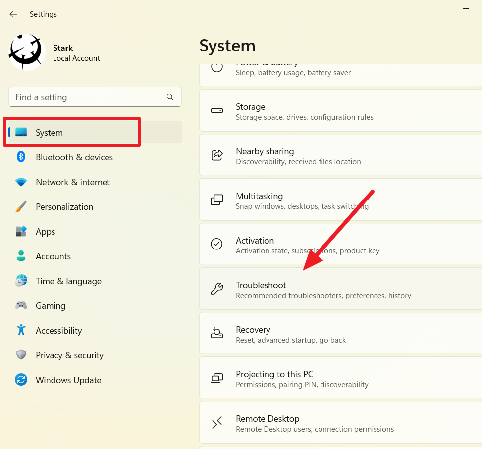 Step 1: Open Settings by pressing Windows+I and navigate to System > Troubleshoot.