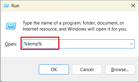 Step 1: Press Windows+R, type %temp%, and press Enter to open the Temp folder.