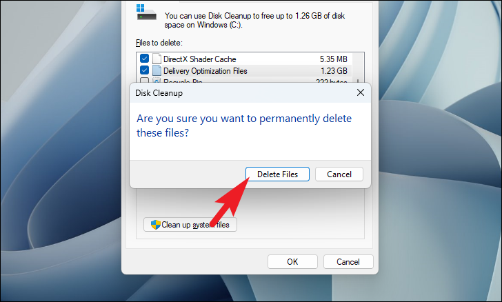 Step 4: Confirm the deletion by clicking Delete Files in the prompt.