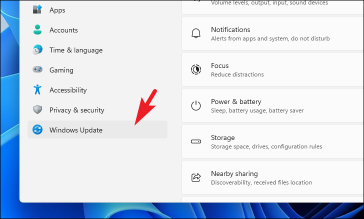 Step 2: In Settings, select Windows Update from the left sidebar.