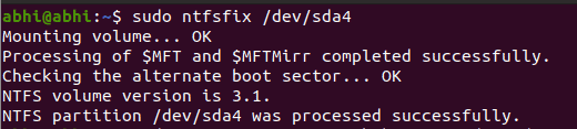 After this, the user can run ntfsfix again to fix the issues. Finally, we update the grub so that it detects the Windows OS on this partition.