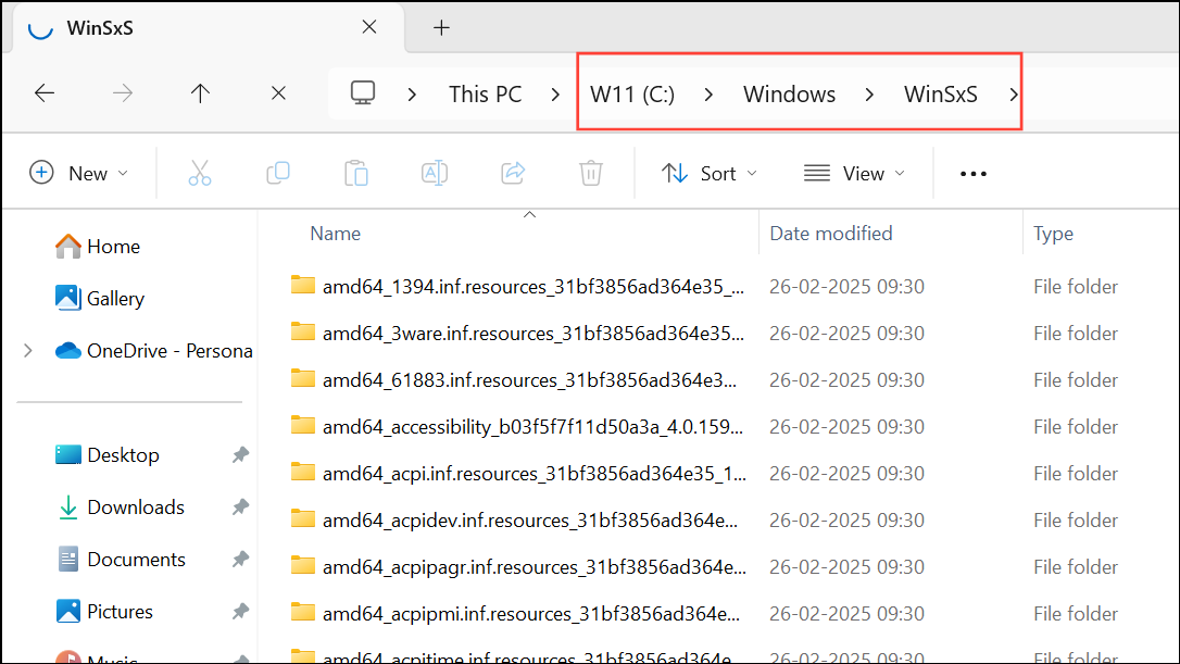 Step 1: Open File Explorer and navigate to C:\Windows\WinSxS.