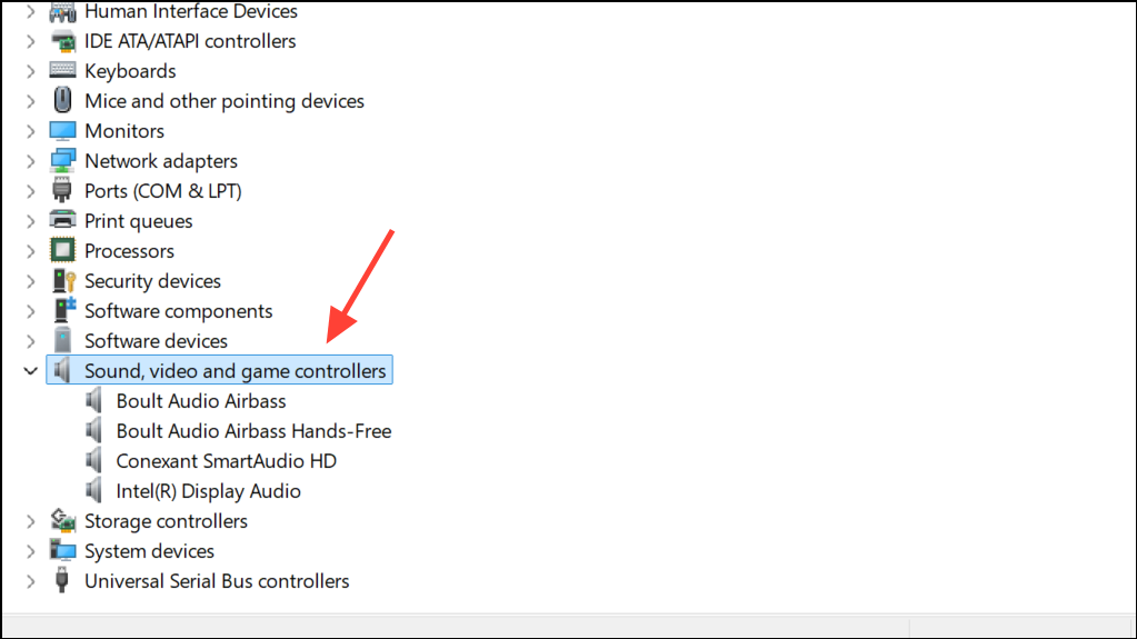 Step 1: In Device Manager, locate your audio device under Sound, video and game controllers. If there’s a yellow warning icon, the driver may be missing or corrupted.