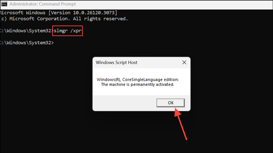 slmgr /xprThis will display a message indicating whether Windows is permanently activated.