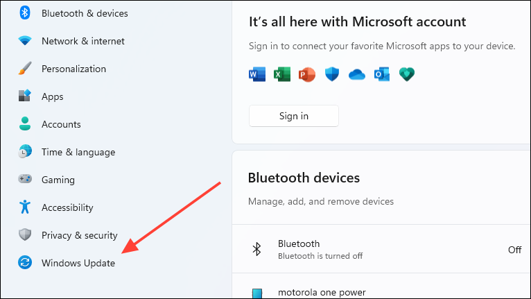 - When the page opens, click on the 'Windows Update' option that appears on the left panel at the bottom.