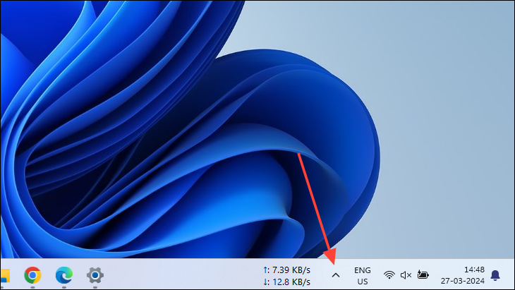 - Click on the '^' icon that appears on the right side of the taskbar to view various running services.