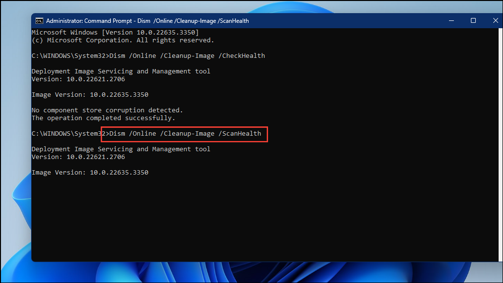 Dism /Online /Cleanup-Image /ScanHealthand press the 'Enter' key. Windows will perform a scan to identify and fix issues when you do so.