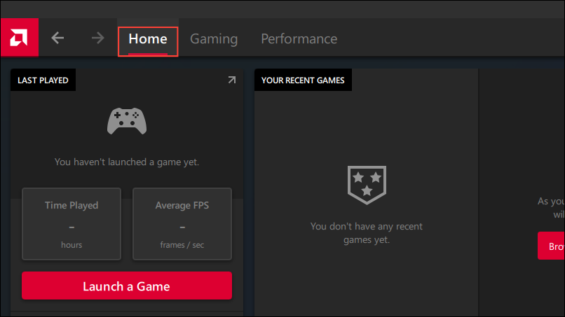 - The AMD Software program will launch, allowing you to check for the latest graphics driver. By default, the 'Home' tab will open when you launch the program.