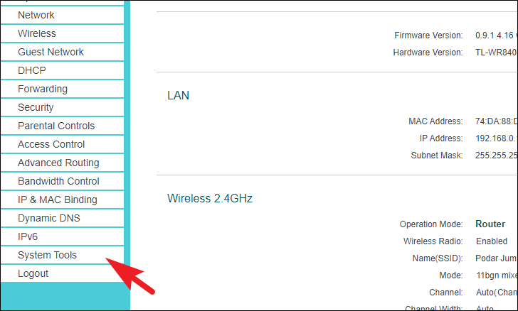 Step 6: Log in with your router's credentials (often found on a sticker underneath the router). Step 7: Navigate to the System Tools or System section.