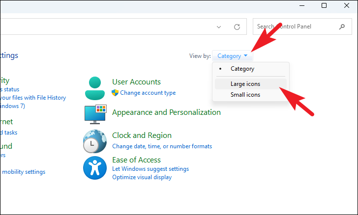 Step 2: Set the View by option to Large icons.