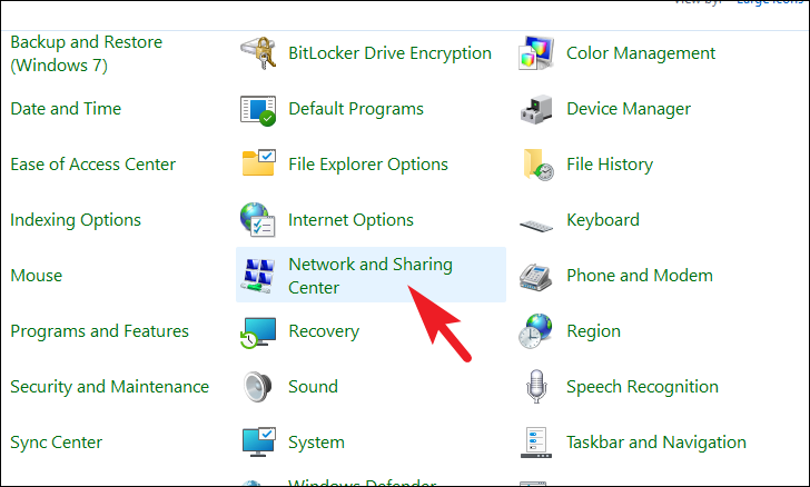 Step 3: Click on Network and Sharing Center.