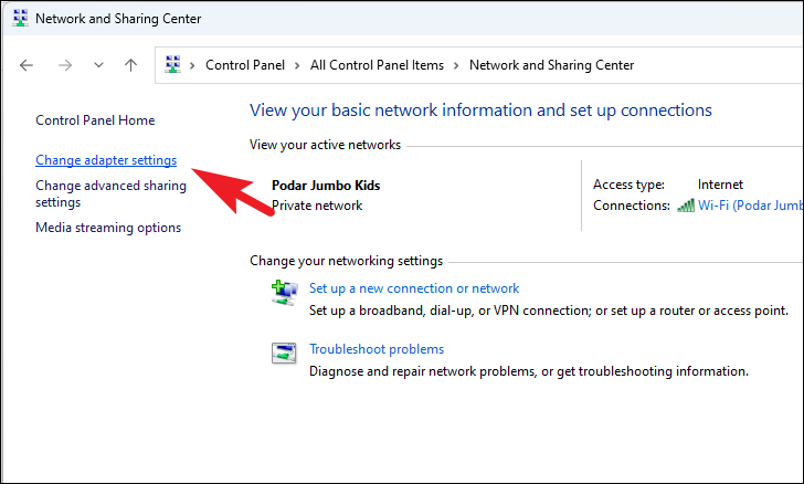 Step 4: On the left sidebar, click on Change adapter settings.