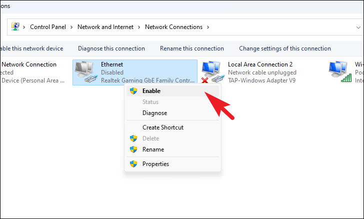 Step 6: Wait a few moments, then right-click on the adapter again and select Enable.