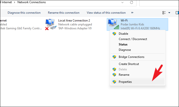 Step 5: Right-click on your network adapter (Wi-Fi or Ethernet) and select Properties.