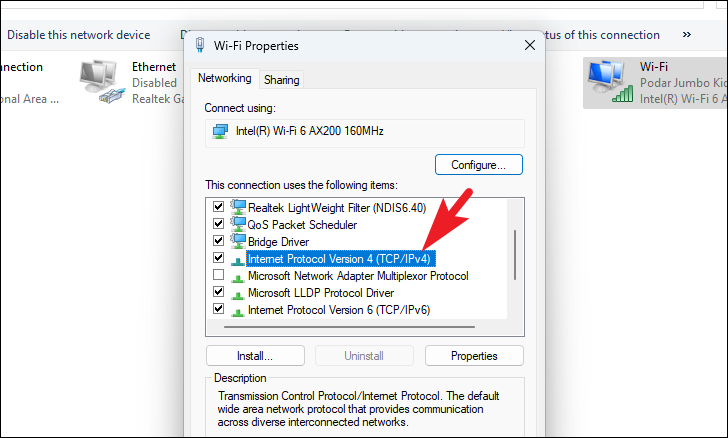 Step 6: In the list, double-click on Internet Protocol Version 4 (TCP/IPv4).