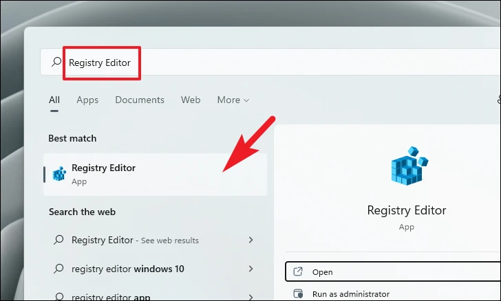 Step 1: Open the Start Menu, type Registry Editor, and click on the Registry Editor app from the search results.
