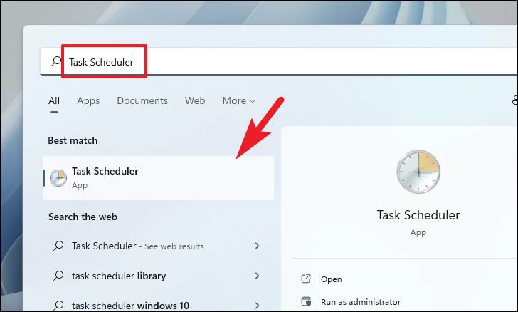 Step 1: Open the Start Menu and type Task Scheduler in the search bar. Then, click on the Task Scheduler app from the search results.