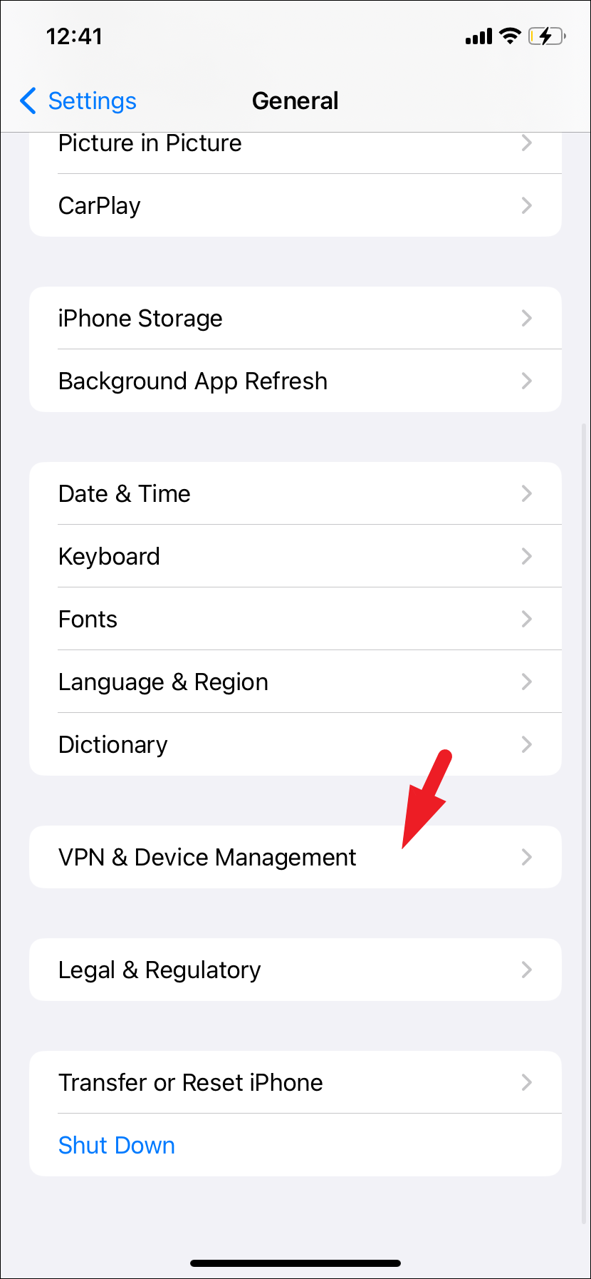- Choose the 'VPN & Device Management' option to proceed.