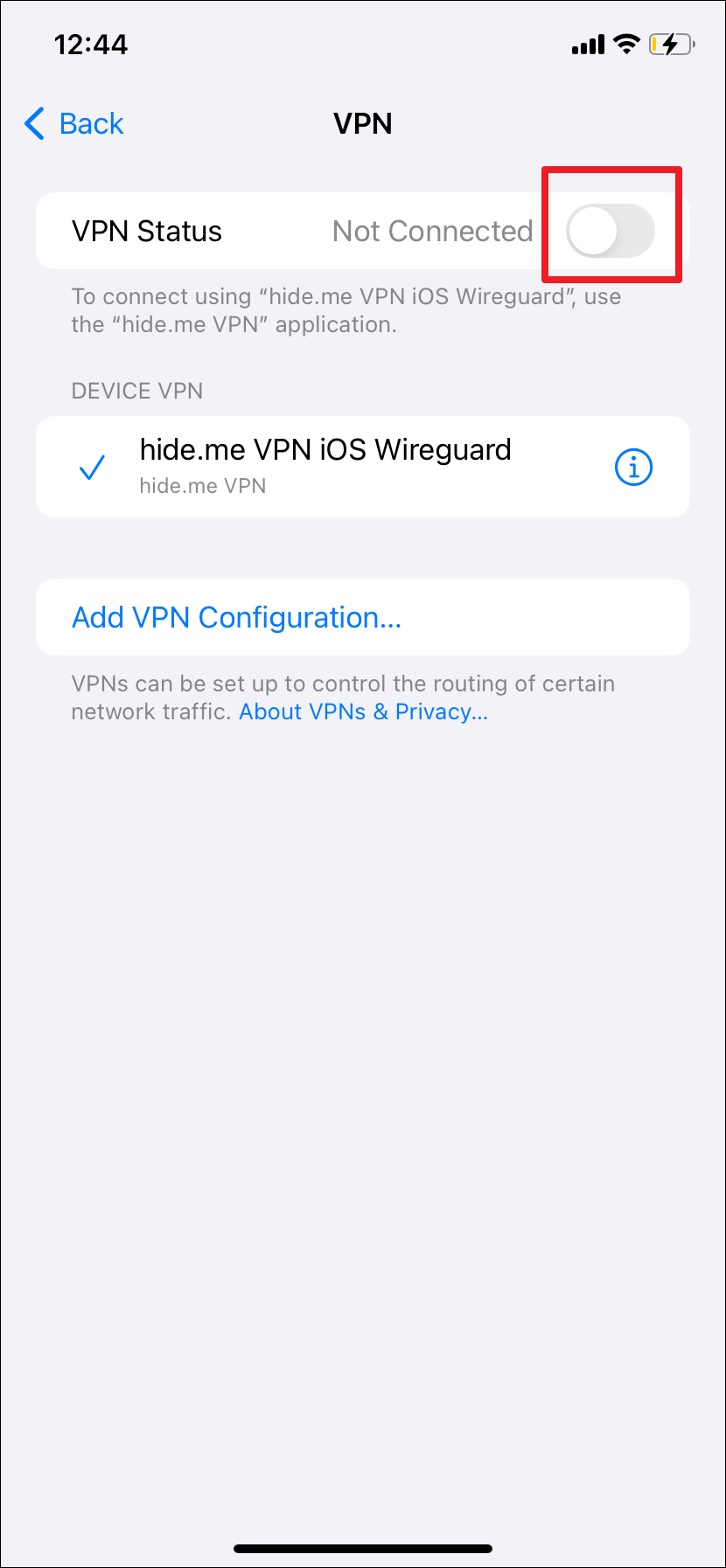 If VPN was enabled on your device, check if you are still facing the Apple ID authentication error on your device after disabling VPN.