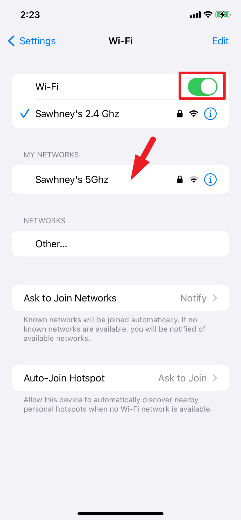 - Turn on the toggle for 'WiFi' if it is turned off. You shall be able to see all available networks, tap on your recognized WiFi network, and provide authentication to connect to it.