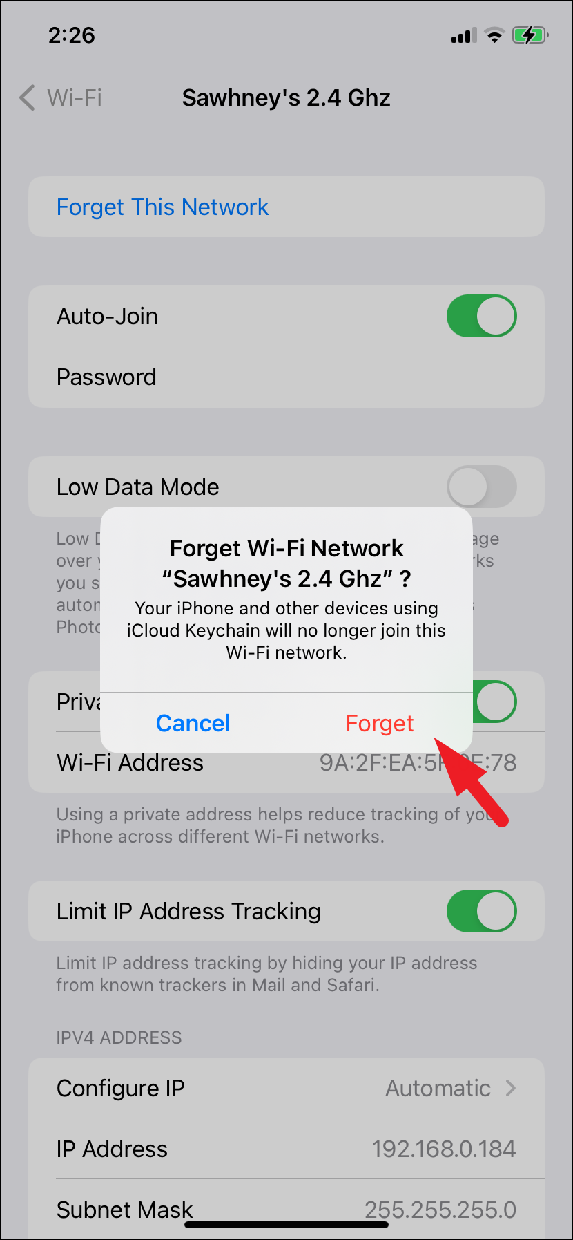 - Select 'Forget This Network' on the subsequent screen.