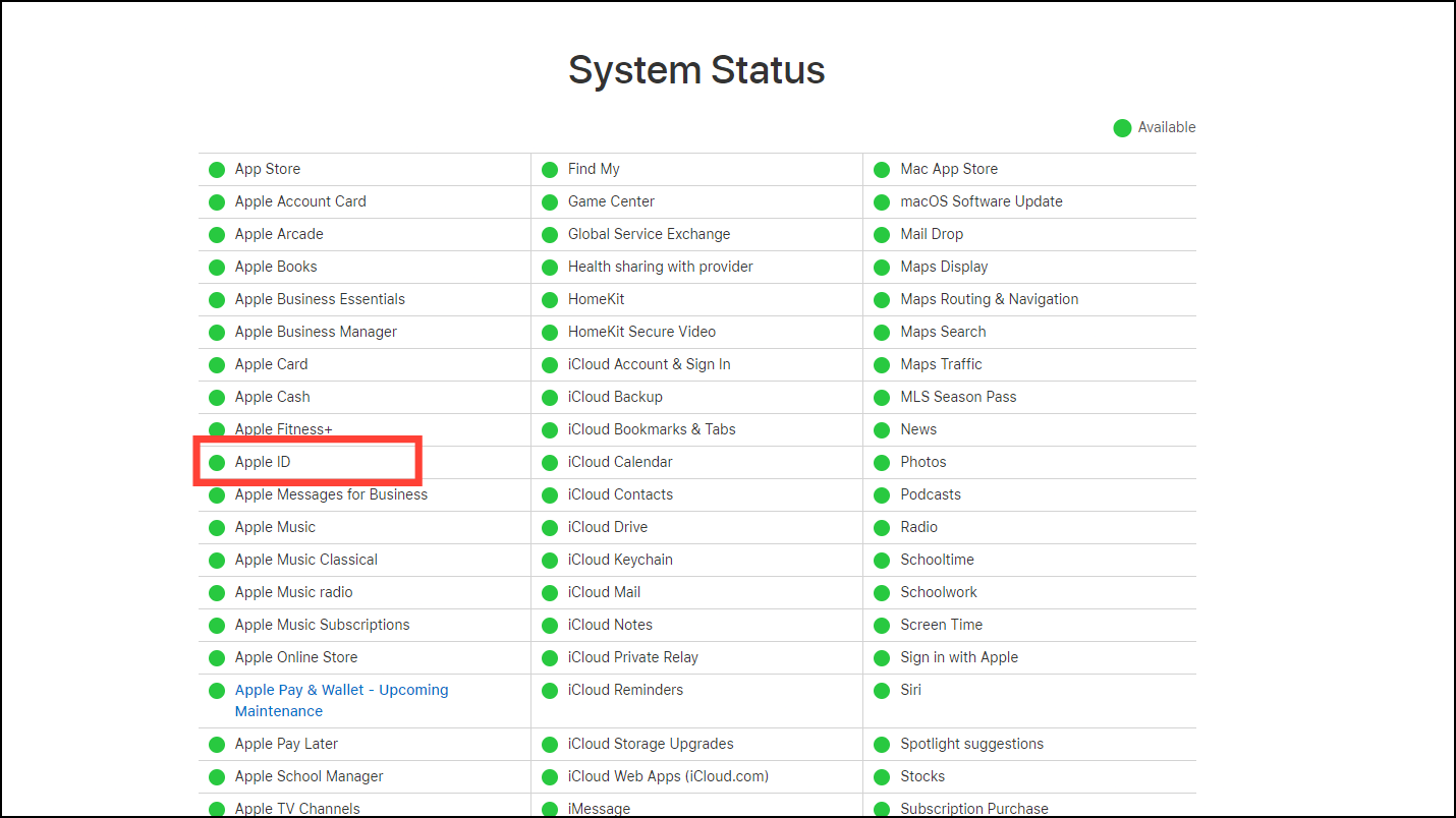 Check the Apple ID Server Status