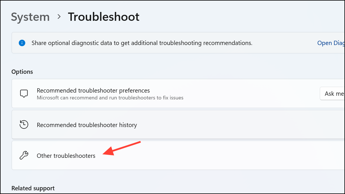 Step 1: Press the Windows + I keys to open Settings. Navigate to "System" > "Troubleshoot" > "Other troubleshooters".
