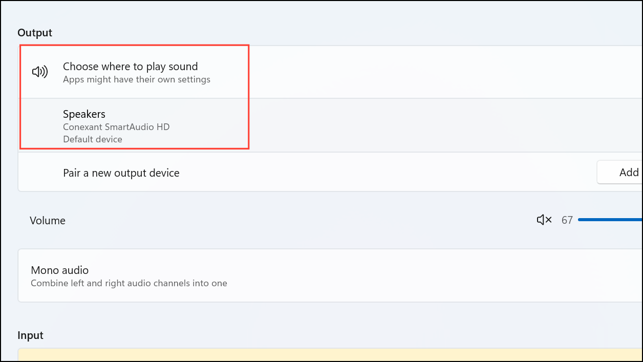 Step 2: In the Sound settings window, navigate to the "Output" section. Verify that your audio device (for example, Realtek Audio) is selected as the default output. If it isn't, click on the correct device to select it.
