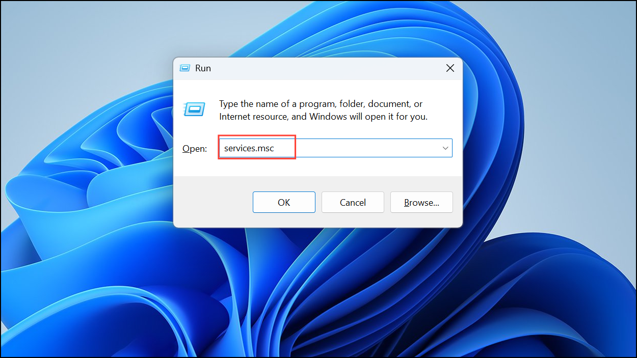 Step 1: Press Windows + R, type services.msc, and press Enter to open the Services panel.