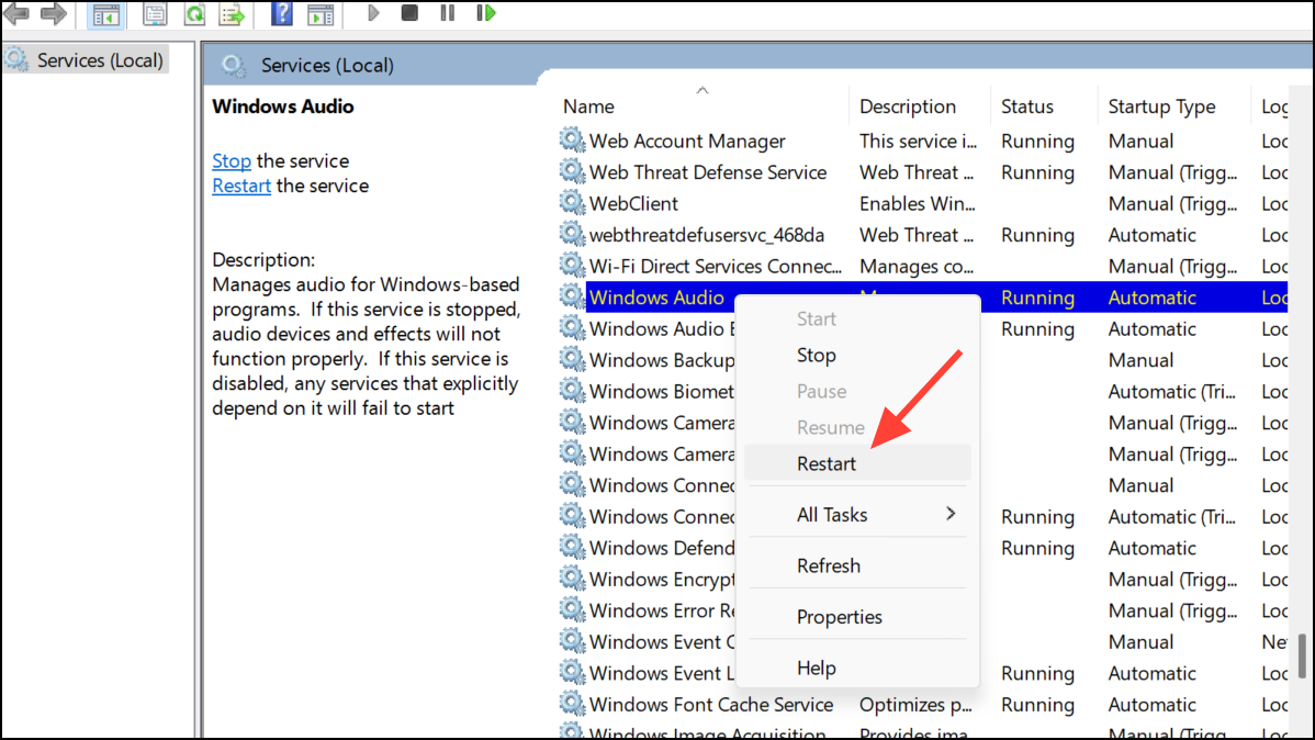 Restarting these services can resolve communication issues between Windows and your audio hardware.