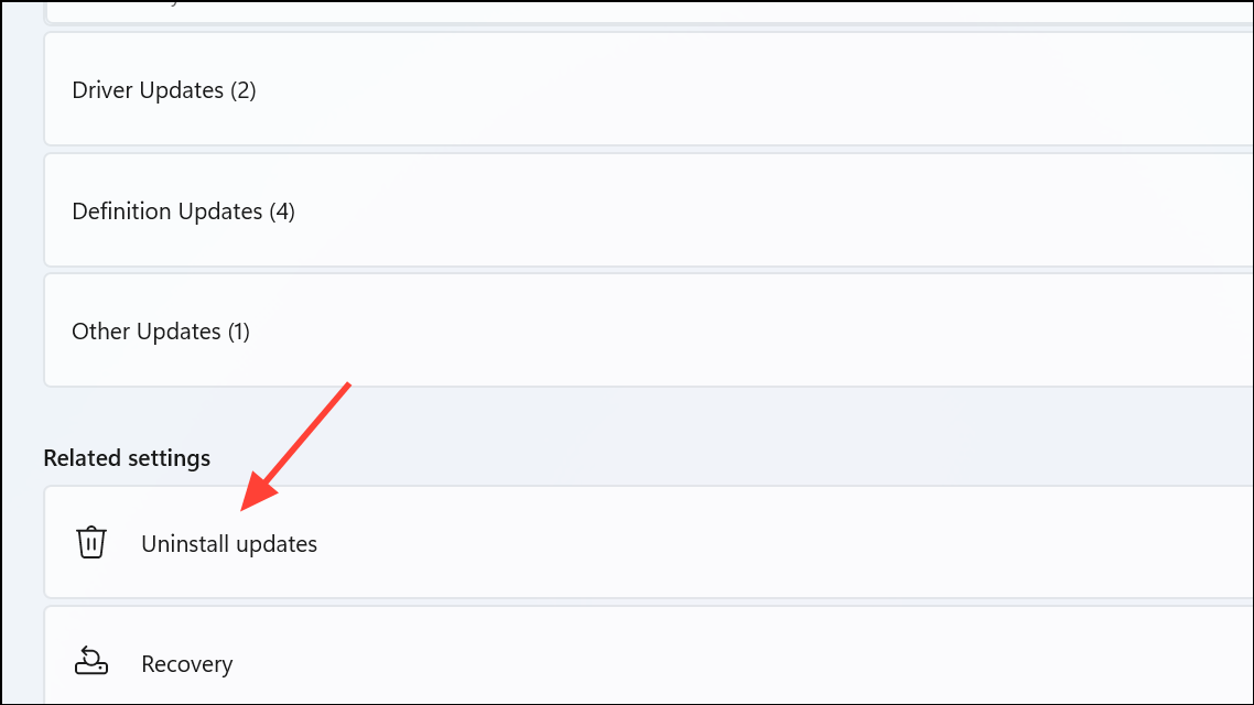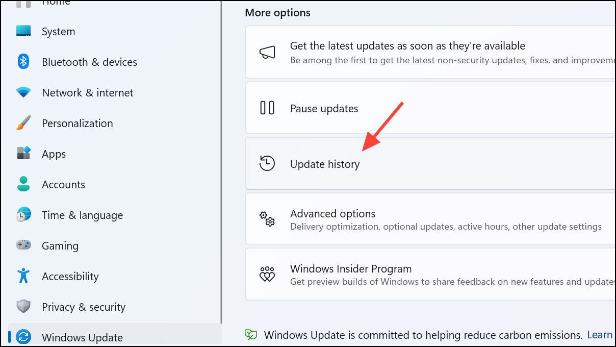 Step 1: Navigate to "Settings" > "Windows Update" > "Update history".