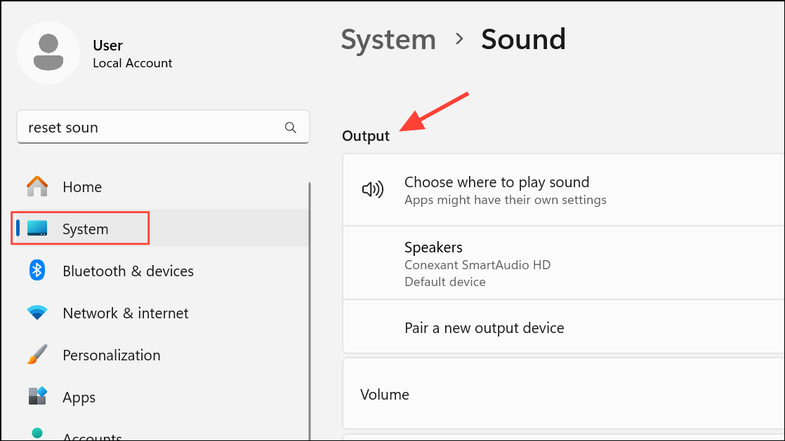 Step 1: Open the Windows sound settings and navigate to System > Sound > Output.
