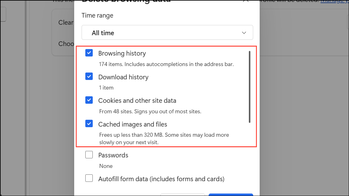 Step 2: Under Clear browsing data, click Choose what to clear.