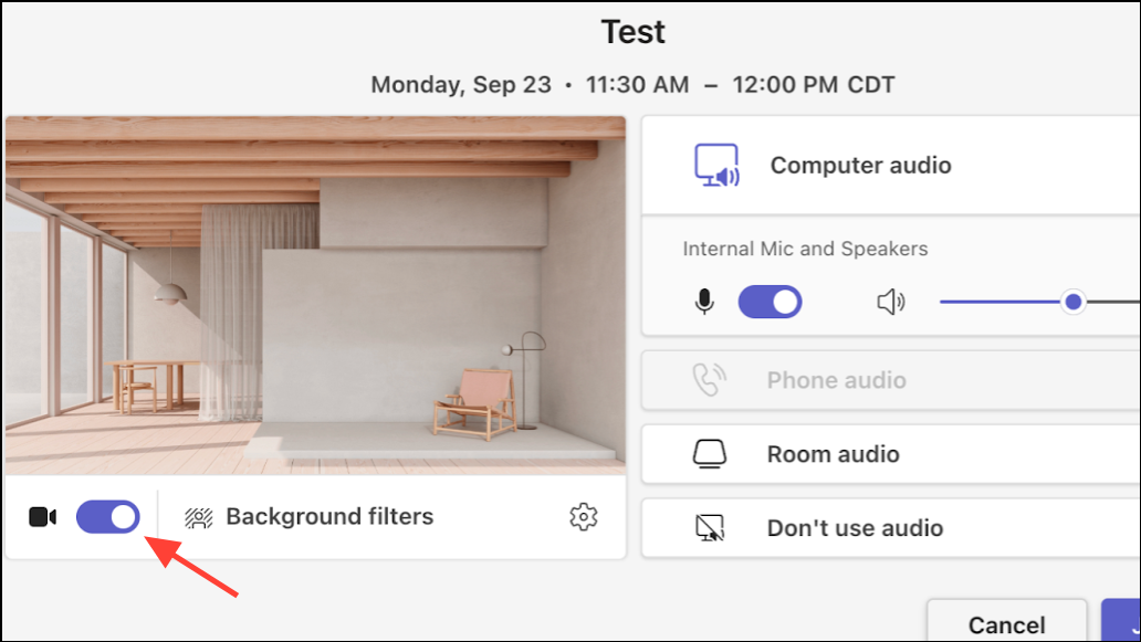 Step 2: On the pre-join screen, locate and click Background filters. If the button is grayed out, double-check your camera permissions and hardware connections.