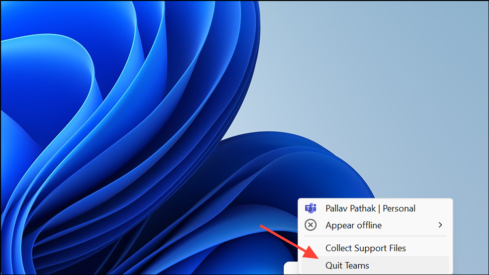 Step 1: Sign out of the Teams desktop app, then right-click the Teams icon in the taskbar and select Quit to fully close the application.