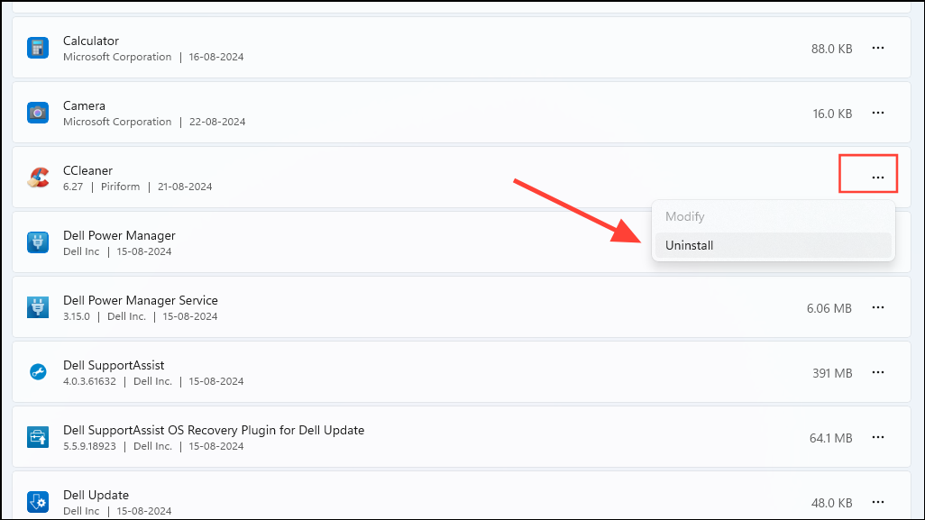 Software conflicts are one of the most common causes of the BAD POOL CALLER BSOD error on Windows 11. There may be issues with applications you installed recently, resulting in the problem. So, the first thing you should try is to remove the program from your PC.