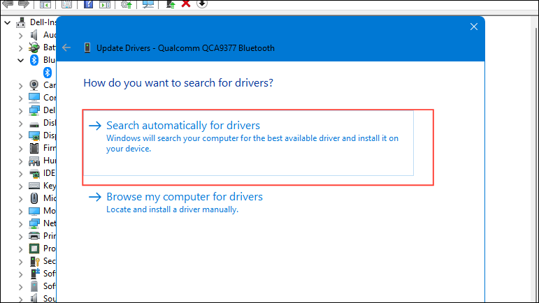 - In the pop-up that appears, click on 'Search automatically for drivers'.