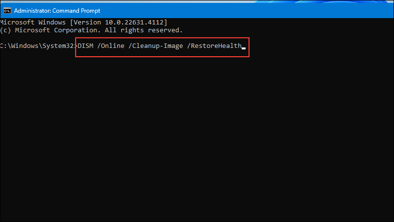 DISM /Online /Cleanup-Image /ScanHealthand press Enter.