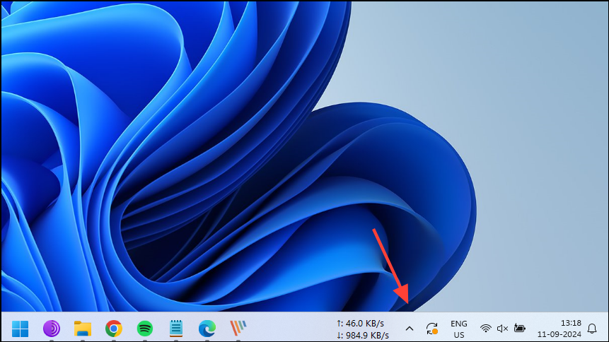 - Click on the taskbar overflow icon which appears as an arrow on the right side of the taskbar to view hidden icons.