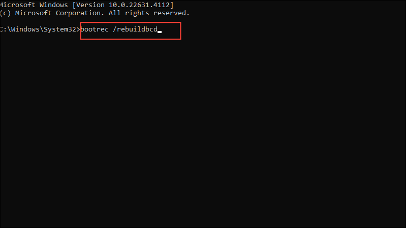 bootrec /repairmbr. After pressing Enter, restart your machine and check whether the issue has been resolved.