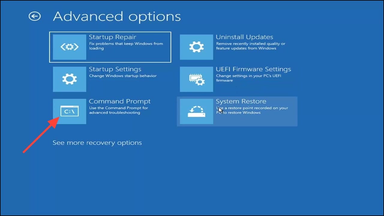 - Boot into the Advanced Options screen and open Command Prompt from there.