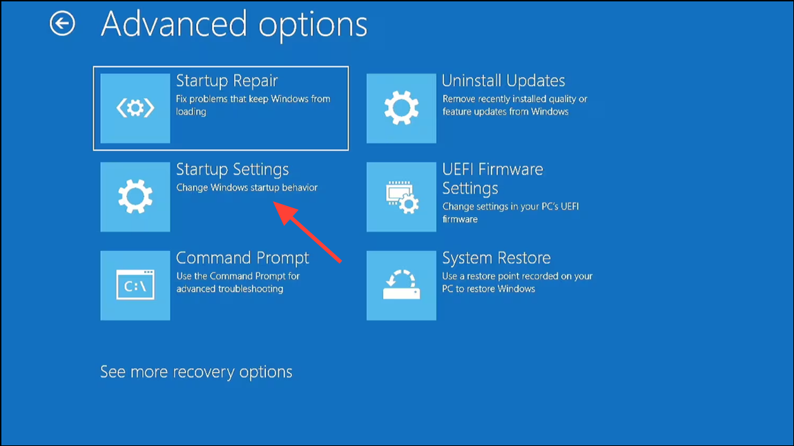 Step 2: On the third start, Windows should display the "Automatic Repair" or "Recovery" screen. Select Advanced options > Troubleshoot > Advanced options > Startup Settings > Restart.